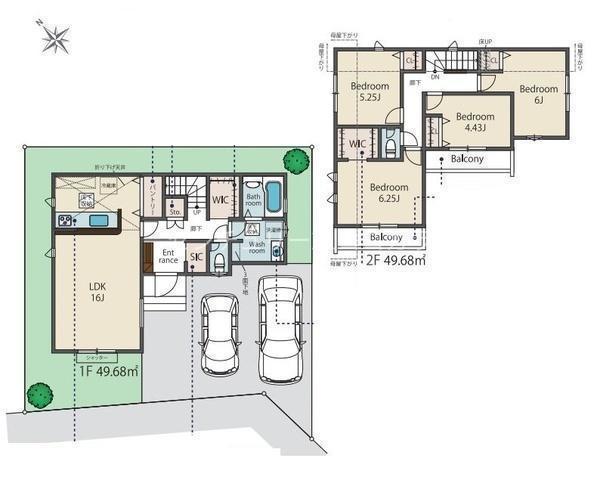 1F LDK 16.0帖 、2F 洋 6.2帖 、2F 洋 6.0帖 、2F 洋 5.2帖 、2F 洋 4.4帖