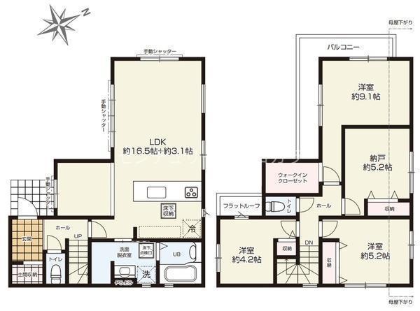 美しい分譲地に2区画のスタイリッシュな新築が新登場☆ご家族が集まる19帖のダイナミックなLDKが魅力♪ウォークインクローゼットや土間収納など、豊富な収納でお部屋がスッキリ片付きます。駐車場は2台分!