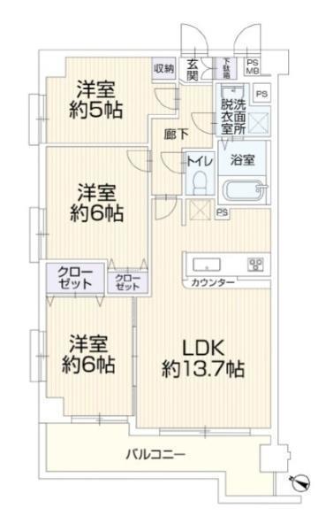京王高尾線めじろ台駅まで徒歩15分!6階建5階部分に位置する3LDK!リビングからバルコニーへと続く開放感あふれる明るい居住空間!収納スペースも豊富でお部屋も広く使えます。住環境の整ったエリアです。