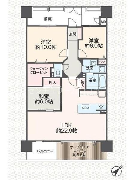 LDK 22.9帖 、洋 10.0帖 、洋 6.0帖 、和 6.0帖
