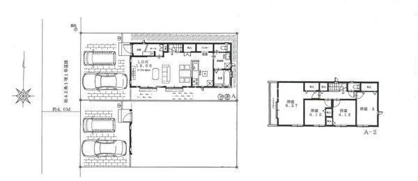 1F LDK 19.0帖 、2F 洋 8.3帖 、2F 洋 4.1帖 、2F 洋 4.1帖 、2F 洋 5.0帖