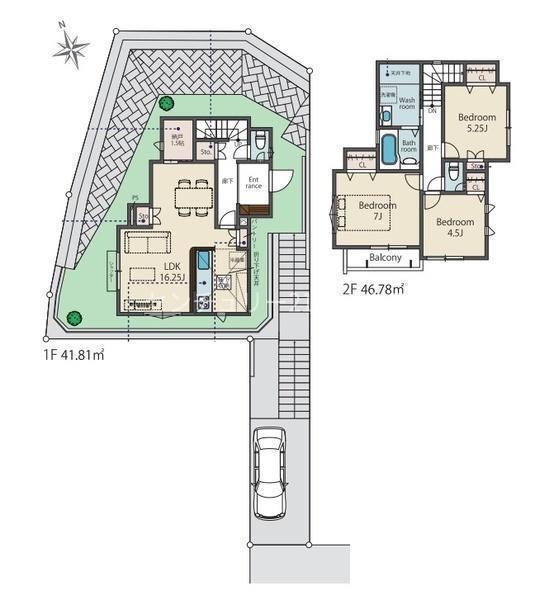 1F LDK 16.2帖 、2F 洋 7.0帖 、2F 洋 5.2帖 、2F 洋 4.5帖