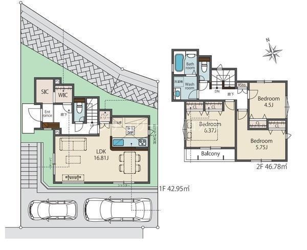 狭間駅より徒歩15分☆小中学校まで徒歩8分、スーパーやコンビニなどの生活施設も充実した暮らしやすい住環境♪ゆとりある16帖LDK☆ベビーカーやスポーツ用品を収納できるSIC付き!カースペース2台分可◎