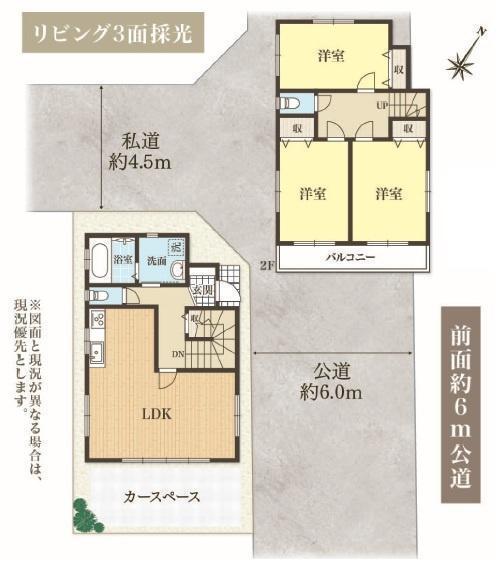 高尾駅徒歩16分、角地の開放的な2階建住宅。南東向き・全室2面採光で家族が集まるLDKも明るく快適。全居室収納付で子育て世代にも嬉しい間取り。イーアス高尾やスーパー、公園も身近で暮らしを支える住環境!