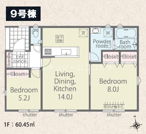 角地に位置する平屋住宅!家族の気配を身近に感じられる間取りが魅力!南側道路に面した開放感とLDK14帖以上のゆとりある空間に加え、全居室収納や食洗機など設備も充実!ご家族の暮らしをしっかり支えます。