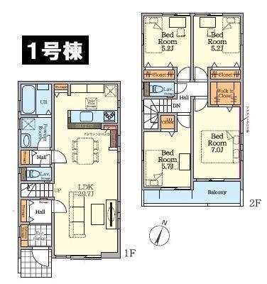 1F LDK 20.7帖 、2F 洋 7.0帖 、2F 洋 5.7帖 、2F 洋 5.2帖 、2F 洋 5.2帖