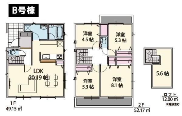 めじろ台駅徒歩8分!前面6m以上道路に面した開放的な立地に誕生した全2棟の新築分譲住宅。全棟ロフト付、南向き・全室2面採光につき陽当り・通風良好、20帖超のLDKが家族団らんの時間を明るく演出します。