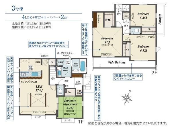 1F LDK 17.0帖 、1F 和 5.2帖 、2F 洋 9.5帖 、2F 洋 6.1帖 、2F 洋 5.2帖