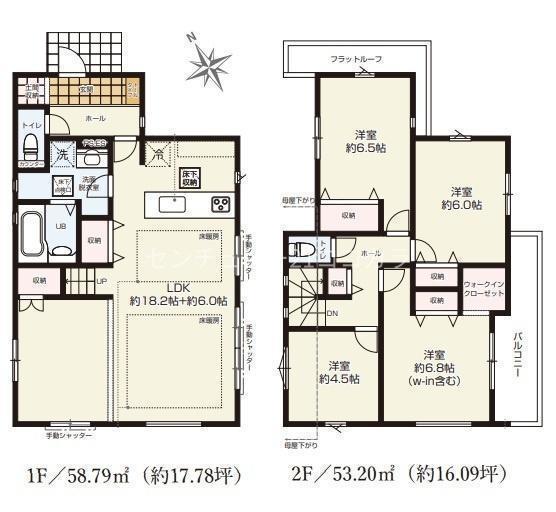 1F LDK 24.2帖 、2F 洋 6.5帖 、2F 洋 6.0帖 、2F 洋 6.8帖 、2F 洋 4.5帖