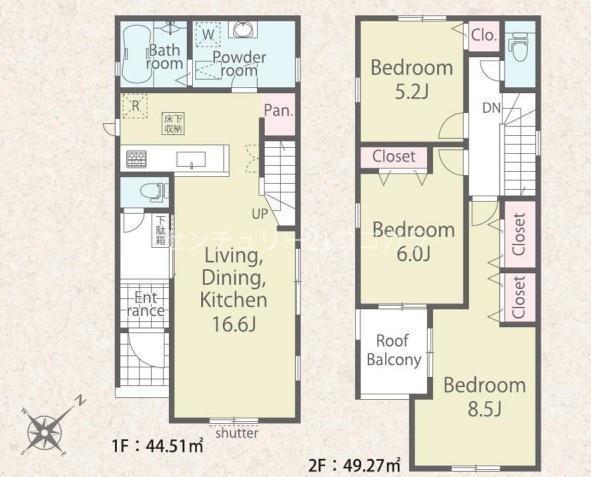 LDK16帖以上広々開放感がありご家族とゆったり過ごせます♪大きなダイニングテーブルやソファを置いてもゆとりのある大空間◎全居室に収納完備でお部屋がスッキリ◎スーパーまで徒歩圏内なので忙しい毎日に便利