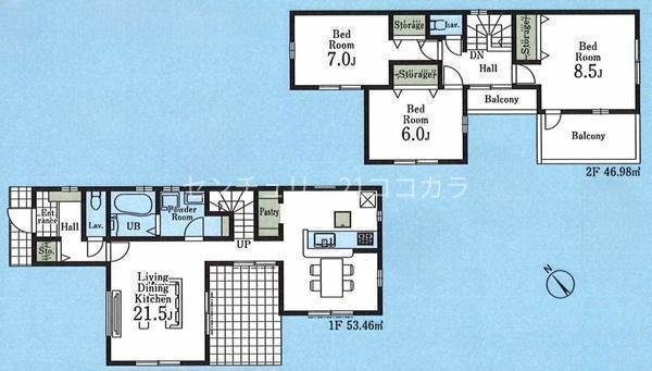 「めじろ台」駅徒歩10分☆21帖の広々LDK!リビングとダイニングが分かれているため、食事と寛ぎの空間を分けて使える♪食材のまとめ買いにも安心のパントリー付き。