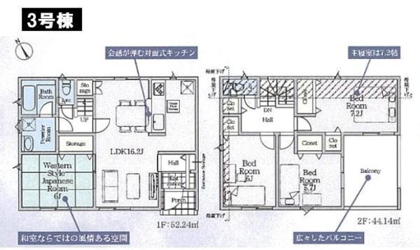 1F LDK 16.2帖 、1F 和 6.0帖 、2F 洋 7.2帖 、2F 洋 6.0帖 、2F 洋 5.7帖