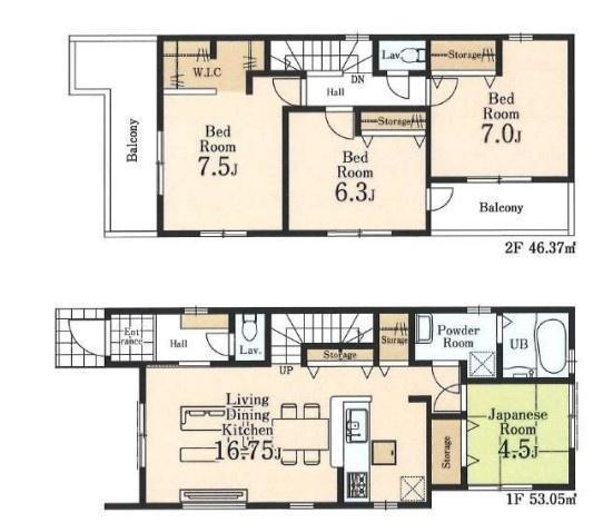 1F LDK 16.7帖 、1F 和 4.5帖 、2F 洋 7.5帖 、2F 洋 7.0帖 、2F 洋 6.3帖