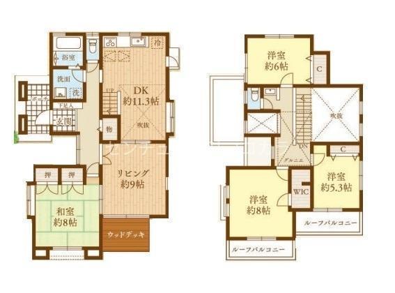リビングダイニングは最大20帖以上ゆったりとした広さでくつろげます♪リビングに隣接した和室は、多目的に活用でき便利!全居室に収納とWIC完備でスッキリ◎カースペース2台可です!来客時などにも便利です。