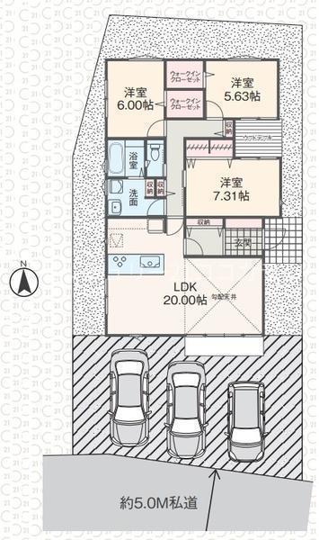 ワンフロアで生活が完結する、家族にやさしい平屋住宅♪南側接道で陽当たり良好◎ウッドデッキはお子様の遊び場やくつろぎスペースとして活躍!小学校徒歩1分お子様の通学も安心♪並列3台駐車可能で来客時も安心◎